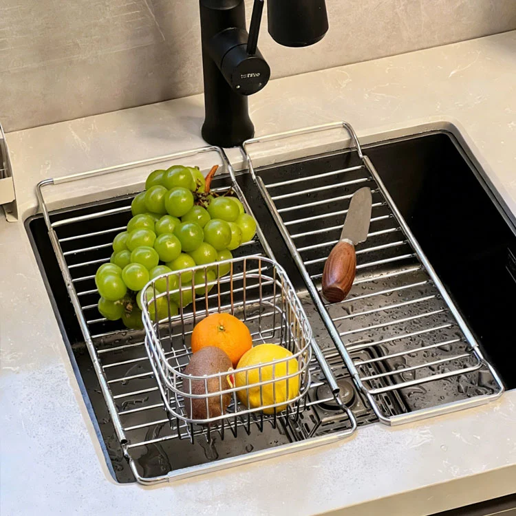 یہ قابل توسیع سٹینلیس سٹیل سنک ڈرین ریک باورچی خانے میں اکثر استعمال ہونے والی اسٹوریج اور ڈریننگ ہارڈویئر آئٹم ہے، جسے خاص طور پر پانی کے بیسن کے علاقے میں برتنوں اور اجزاء کو نکالنے اور عارضی طور پر ذخیرہ کرنے کے لیے ڈیزائن کیا گیا ہے۔ اس کے ایڈجسٹ سائز، سٹینلیس سٹیل کے مواد اور عملی ڈھانچے کے ساتھ، یہ باورچی خانے کے پانی کے بیسن کے علاقے میں ذخیرہ کرنے کا بنیادی آلہ بن گیا ہے۔